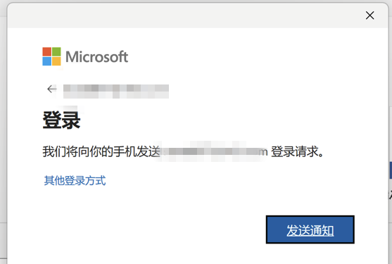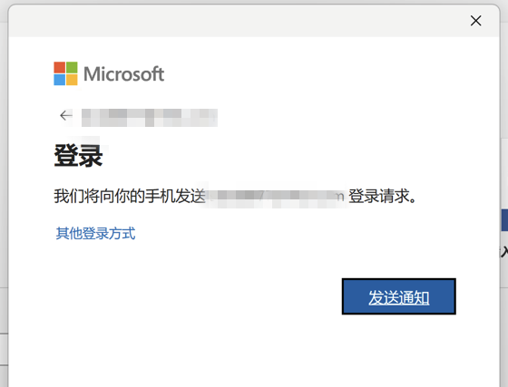 默认是通过微软Authenticator验证方式登录,点选【发送通知】。需要手机端从微软官网下载安装 Authenticator 应用进行验证,详细可参考微软官网使用 Microsoft Authenticator 登录的教程。