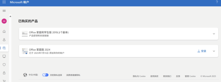 于微软官网登录帐户后,可查看当前帐户已激活的Office版本信息。