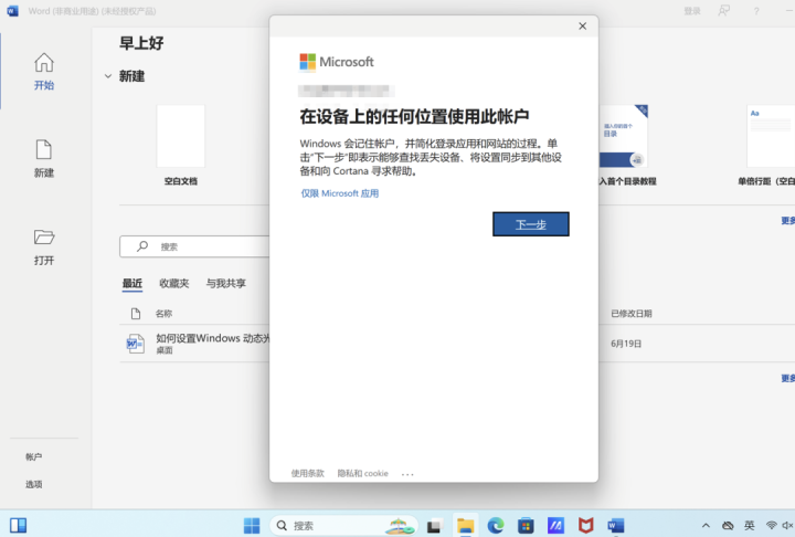 登入Microsoft帐户后,点击【下一步】继续。