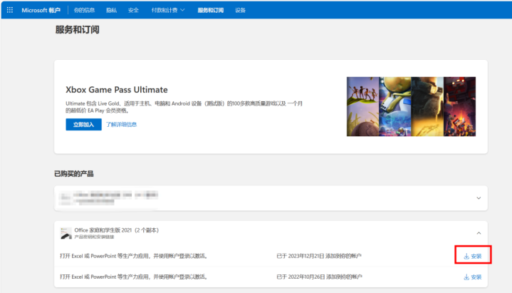 如果Office 2024已经从您的电脑中移除,您可以访问微软账户主页,此类许可证一般是绑定在您的微软账户的服务与订阅下。